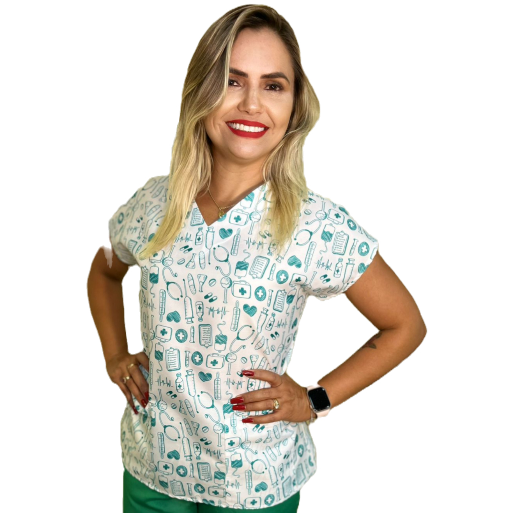 Blusa Scrub Pijama Cirúrgico Estampado Enfermagem Medicina