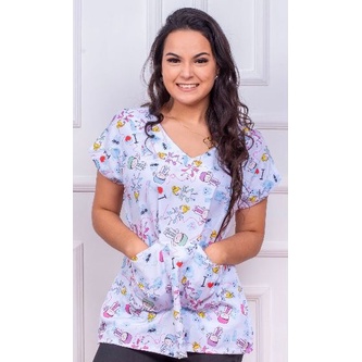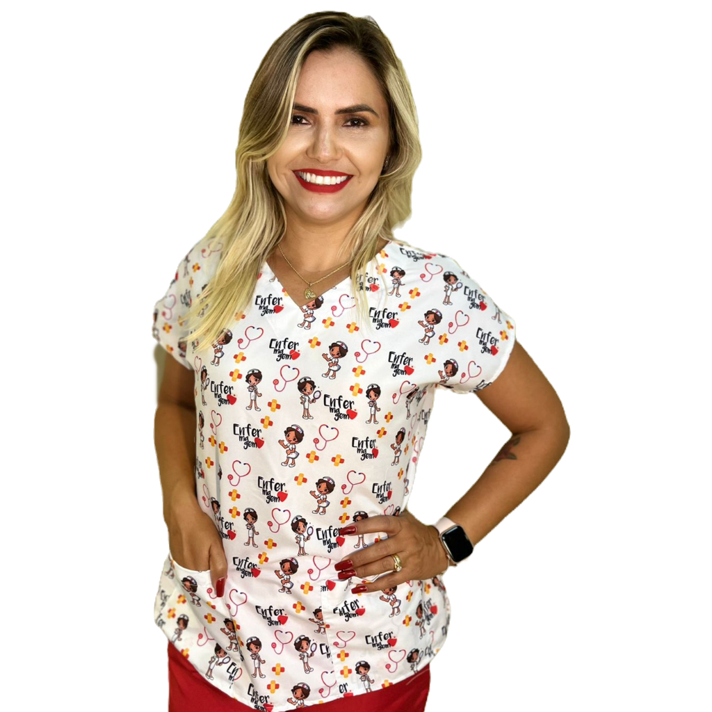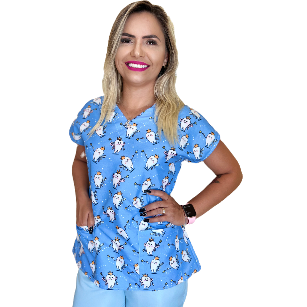Blusa Bata Scrub Pijama Cirúrgico Estampado - Fada do Dente - Odontologia, Enfermagem, Area da Saude