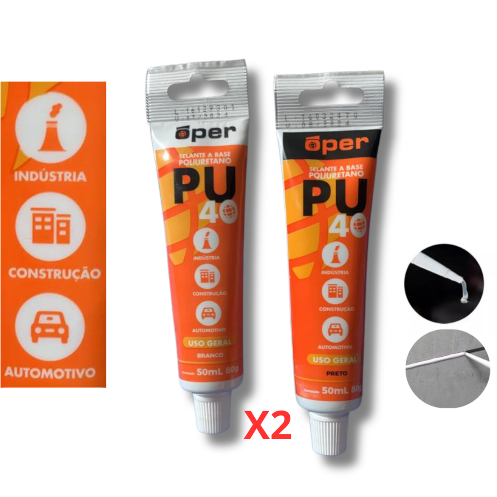 Cola PU 40 Selante 2 UN Cola a Base de Poliuretano Uso Geral Branco ou Preto 50ml 80g Adesivo PU40