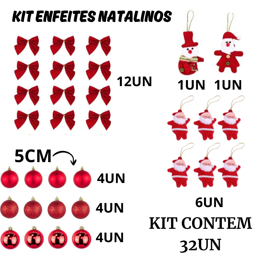 Kit Com 32 Peças De Enfeite Natalino Sortido Com Papai Noel Laço Bola E Enfeite Tecido Para Natal
