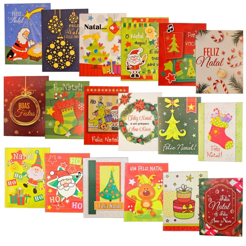 Cartôes de Natal 5,5 x 7,2cm com Envelope Agência de Ideias - Kit com 20 ou 30 Unidades