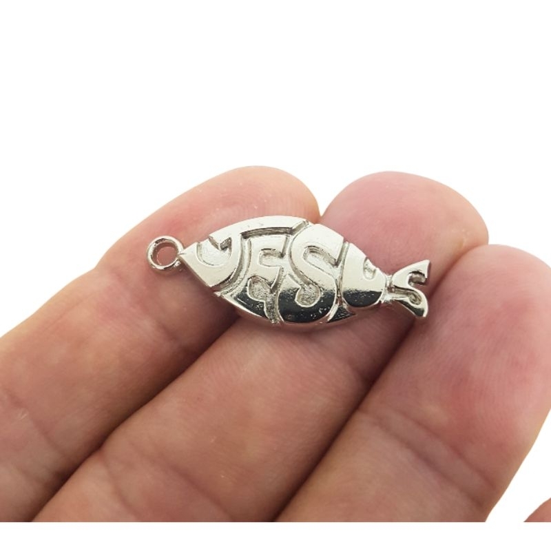 Pingente Cristão de Metal Peixe Jesus para Montar Bijuterias 20 peças