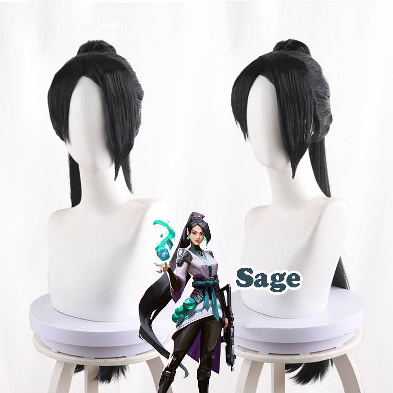 Sta5 VALORANT Sage Cosplay Peruca De Tigre Preto Clip Jogo De Cabelo Longo Costume Halloween Decor