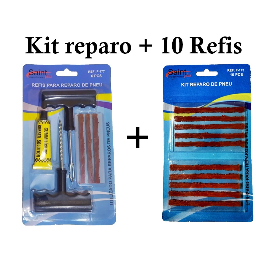 Kit Reparo De Pneu Sem Câmara Furado Carro Moto e Refil tipo macarrão com 3 unidades Envio diario
