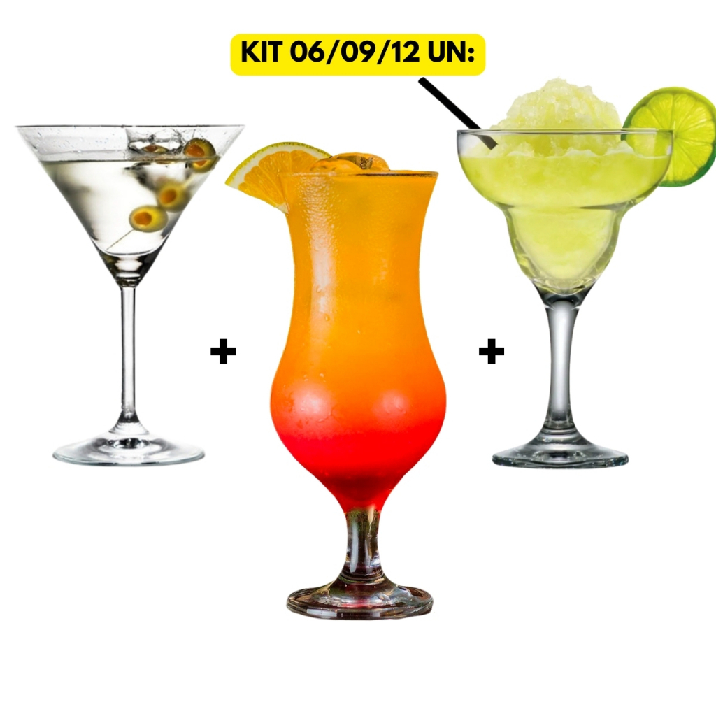 Jogo Kit Taças Vidro Margarita Martini Coquetel Windsor 06/09/12UN Temperado Transparente Long Drink Tequila Vinho Gin Suco