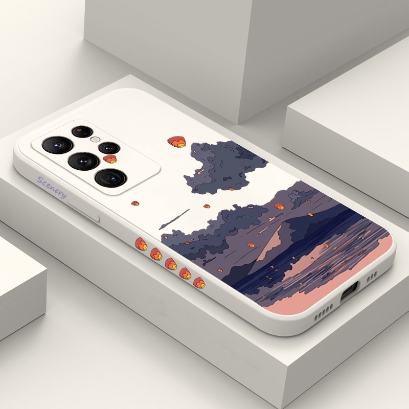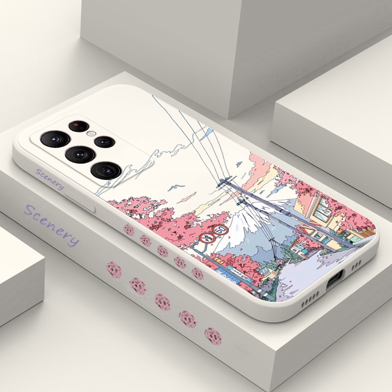 Capa Cenário Anime De Silicone Para Telefone Samsung Galaxy S23 Ultra S22 S21 Plus S21 FE Nota 20 Design Criativo À Prova De Choque