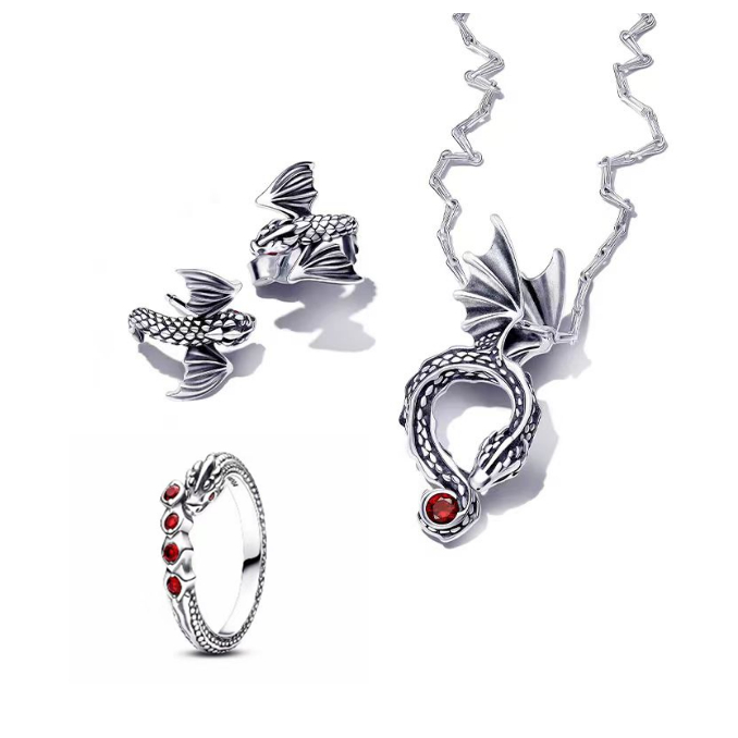 Jogo De Tronos Série Zircon Dragão Vermelho Brilhante Anel De drongo Brincos Para Mulheres Stud Dragon Conjunto De Colar Pendente
