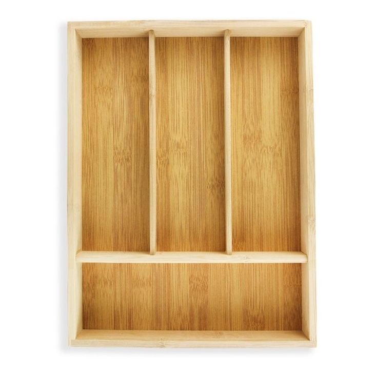 Bandeja Porta Talheres De Maderia Com 4 Divisórias Organizador Para Gaveta Bambu Madeira Separador