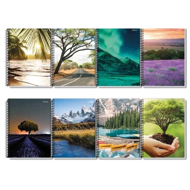 Kit Caderno 1 ou 2 Unidades 20 Matérias Capa Dura 400 Folhas Paisagens