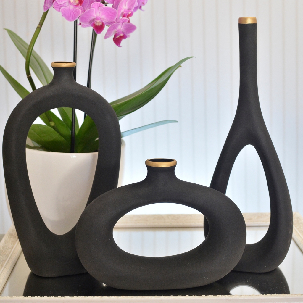 Kit Trio 3 Vasos Ceramica Enfeite Decorativo Centro De Mesa Sala rack sala moderno