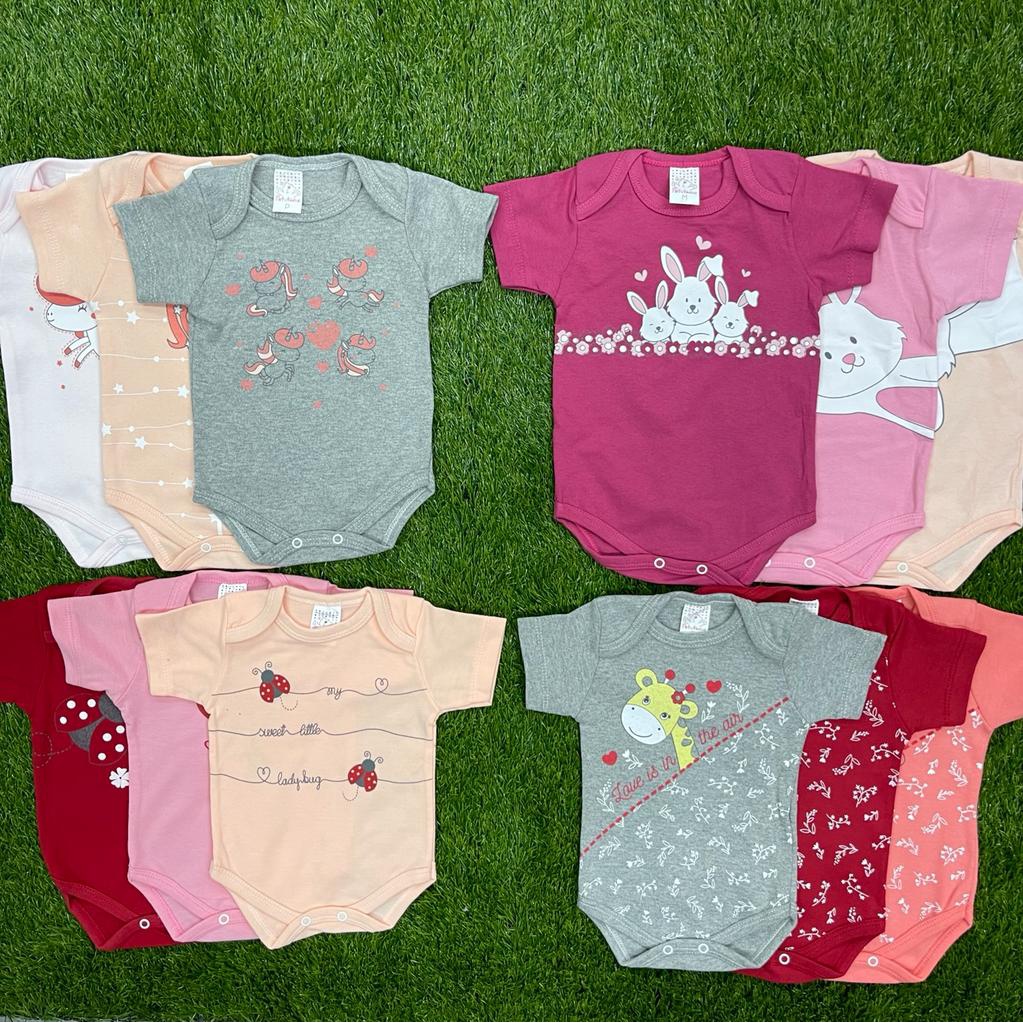kit 5 peças body colorido manga curta 100% algodão feminino roupa de bebê menina estampas e cores sortidas
