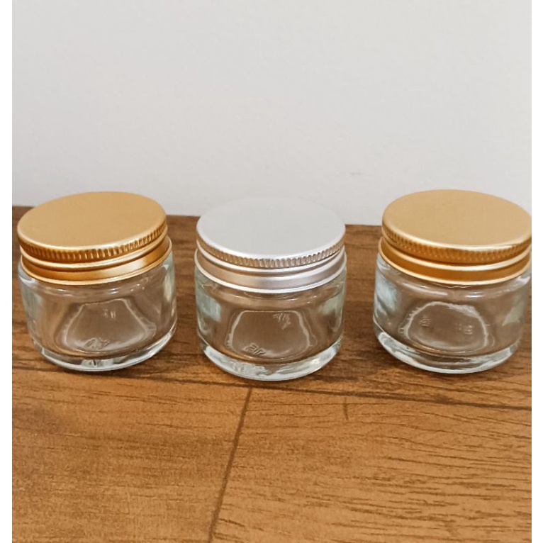 2/4/6 Potes de vidro 30ml com tampa alumínio prata ou dourada.