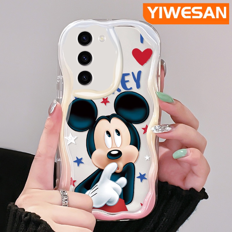 Para Samsung S23 Plus S23 Ultra Case Cartoon Mickey Colorful Creamy Texture Wave Border Phone Novo Estojo De Silicone À Prova De Choque Caixa Macia E Transparente