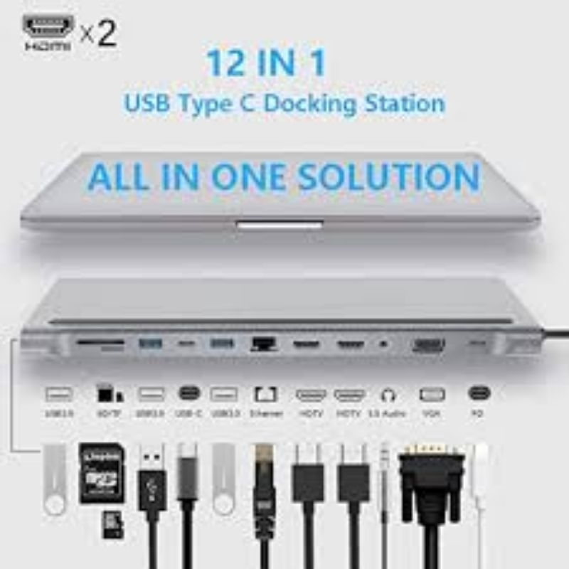 12 Em 1 USB HUB 3 0 Tipo C 4K HDMI Dock Station TV Monitor Conversor De Vídeo RJ45 Ethernet SD Leitor De Cartão TF Acessórios Para Notebook