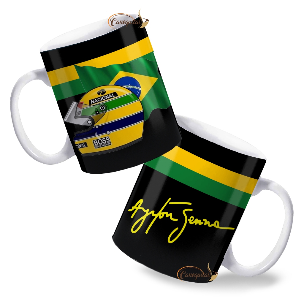 Caneca Ayrton Senna personalizada xicara para café corrida carro formula1 autógrafo Brasileiro mágica