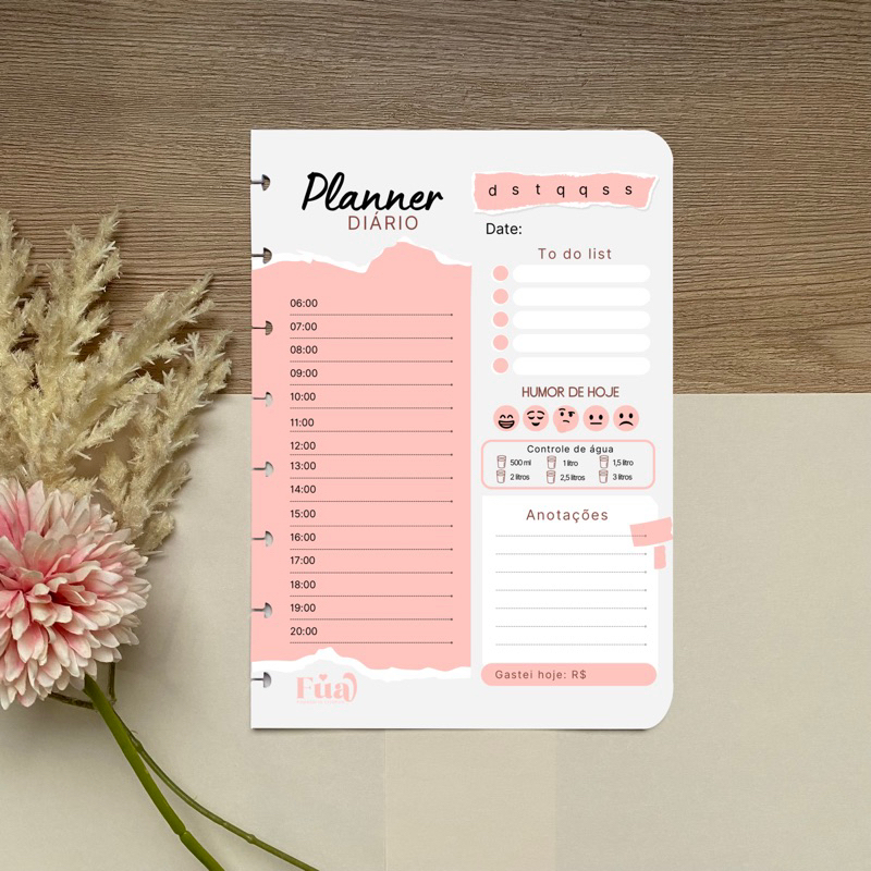 Refil Planner diário para caderno de disco A5 (14,8 x 21 cm)