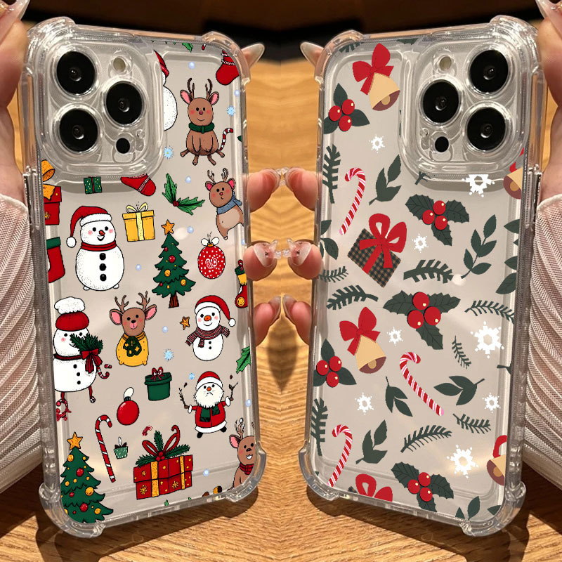 Caixa De Presente De Boneco De Neve De Árvore De Natal Capa De Silicone Transparente Para iPhone 17Air 17 16e 16 15 14 1