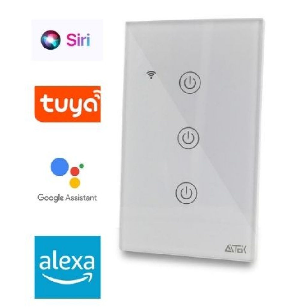 Interruptor Inteligente Smart Home WiFi/Bluetooth Caixa 4x2 com 3 Botões Touch e Voz Alexa, Google Assistent, Tuya, Siri