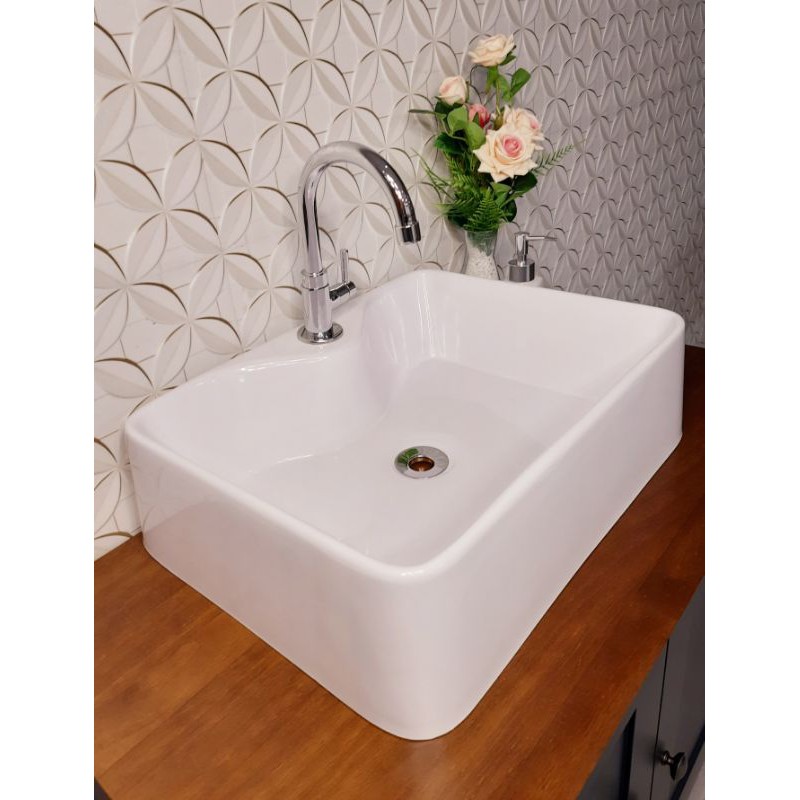 Cuba de apoio para banheiro Basic Q6 35x35cm mesa branca Celite