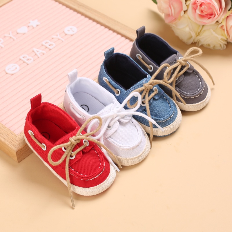 Novo Estilo De Sapatos Para Bebês Meninos E Meninas Casuais De Lona Macia Recém-Nascidos De Batismo Plana