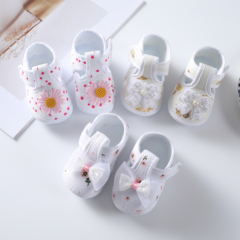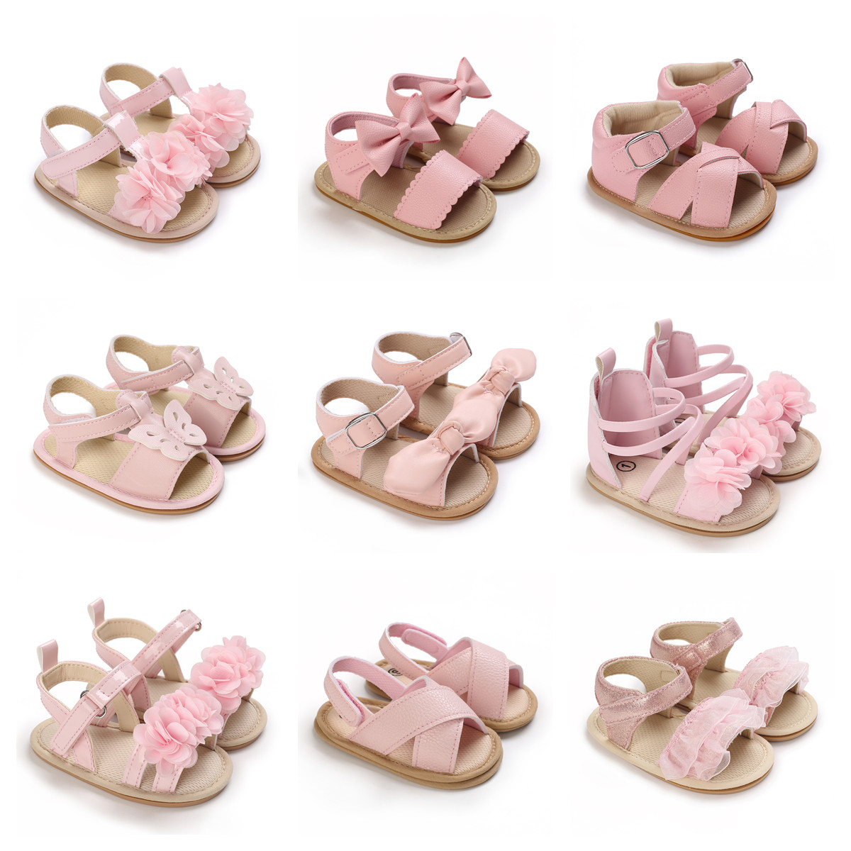 Novos Sapatos De Verão Para Garotas Recém-Nascidas Anti-Derrapante Passeio Confortáveis E Bonitos Princesa Florais Com Laço Rosa