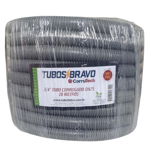 Conduíte - Eletroduto Corrugado PVC Ecológico Flexível Tubos Bravo Cinza DN 25 - 3/4 x 50m