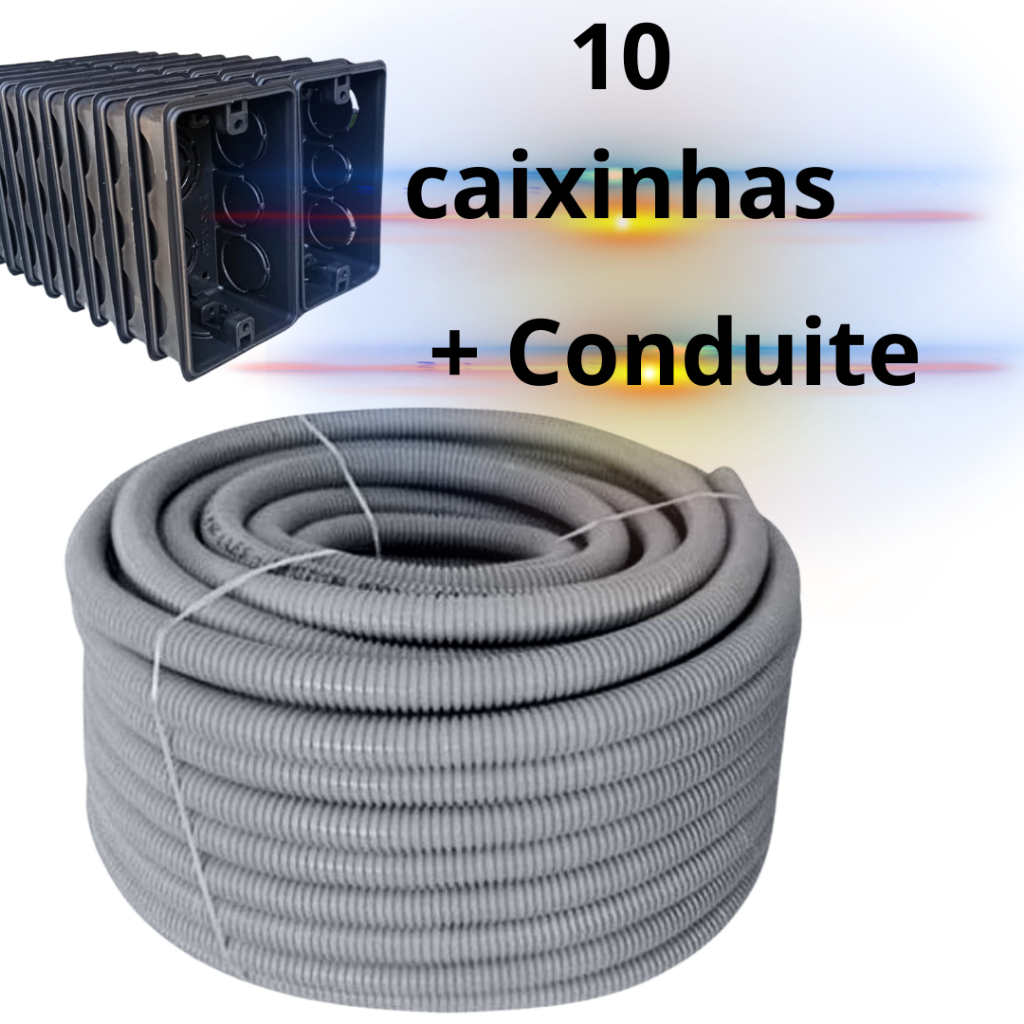 Conduite Corrugado Reforçado Canduite cinza 3/4 + 10 Caixinhas 4x2