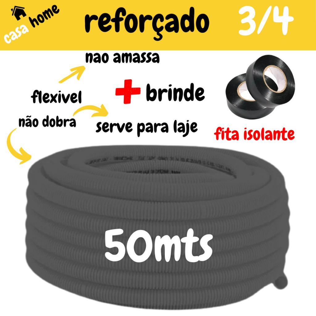 Conduíte Corrugado Cinza 3/4 X 50m - Pead - Eletroduto REFORÇADO