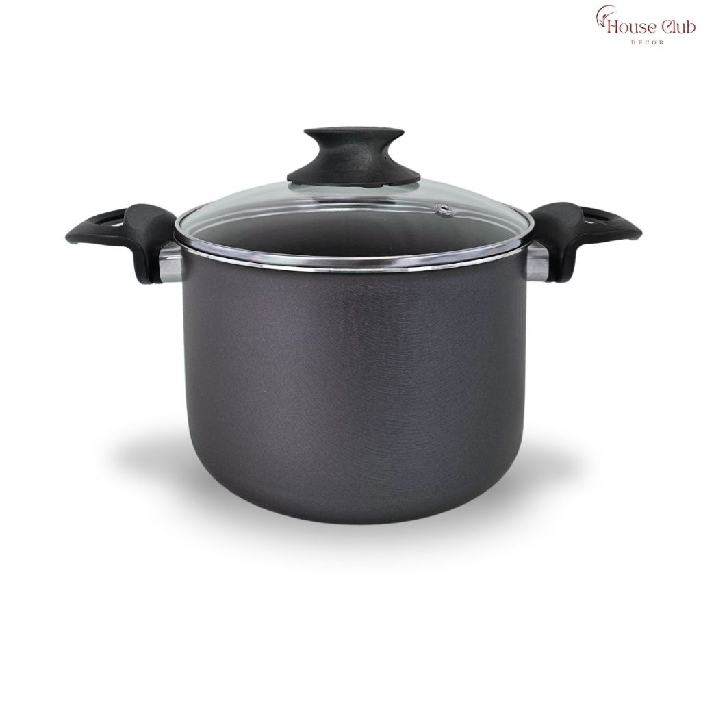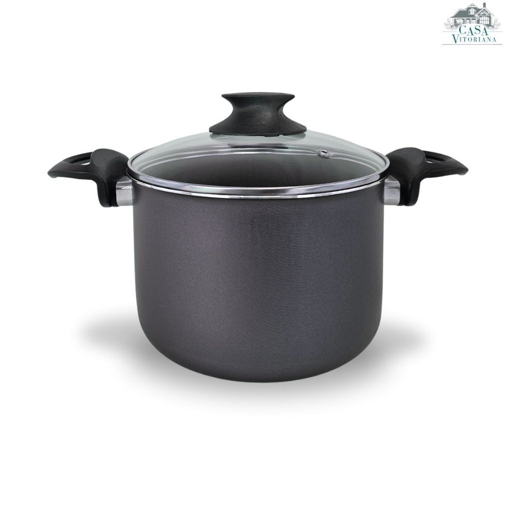 Caldeirão Panela 18 cm Alta Antiaderente com Tampa de Vidro Cor Preto Grafite