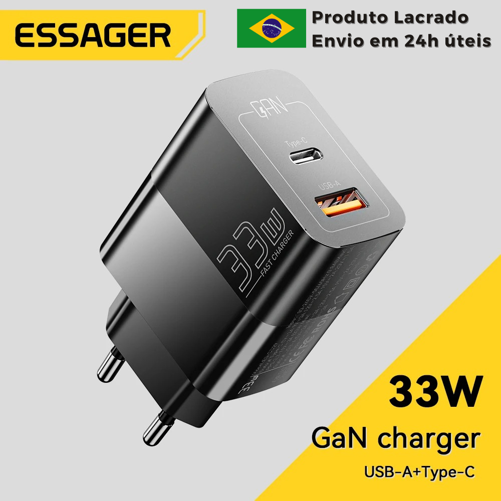 Carregador Rápido Essager PD 33w Usb Tipo C Fonte Turbo Para Iphone Android - Original