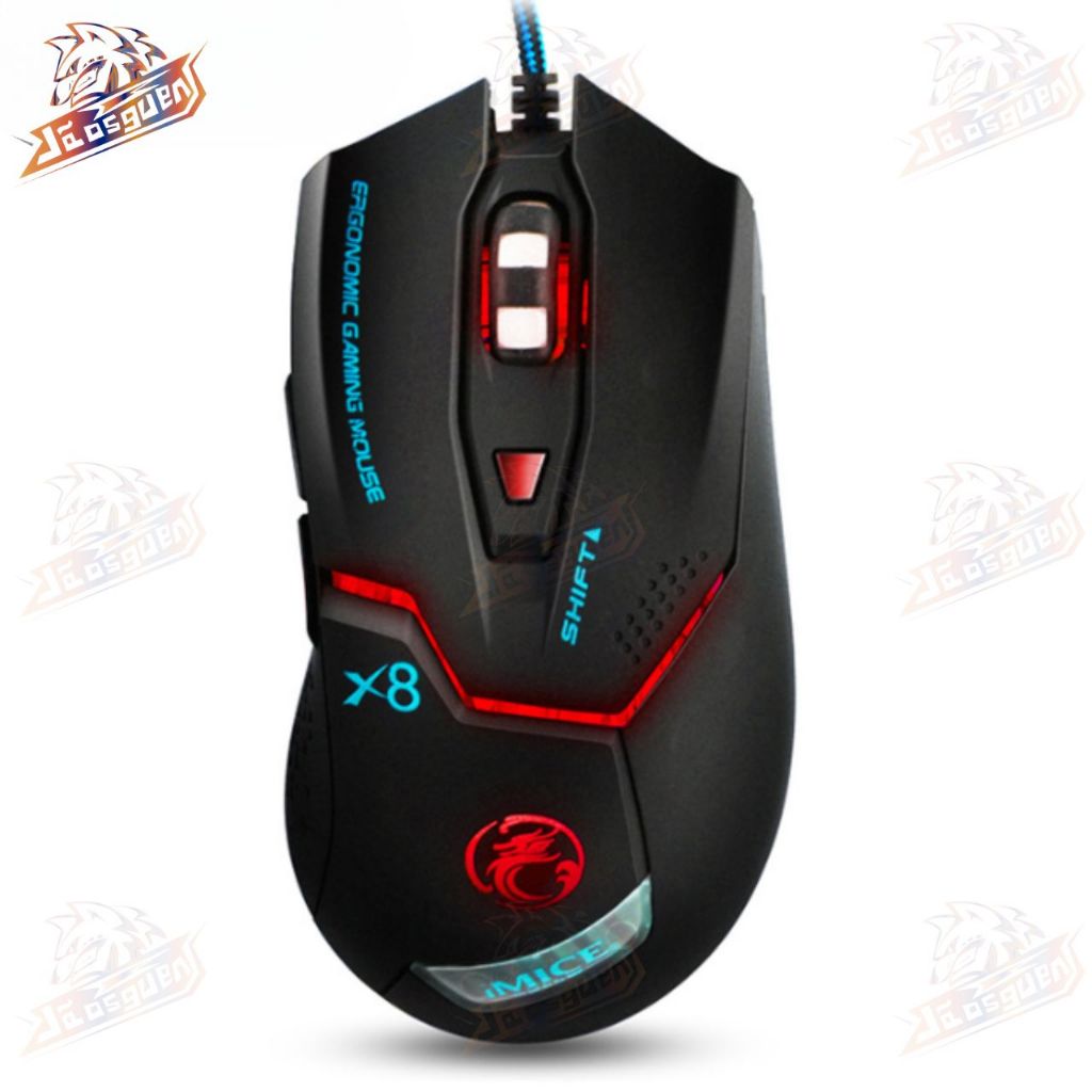 Mouse Gamer Óptico X8 Canhoto com Iluminação LED RGB, DPI Ajustável de 1600/2400/3200 e 7 Botões Yihan