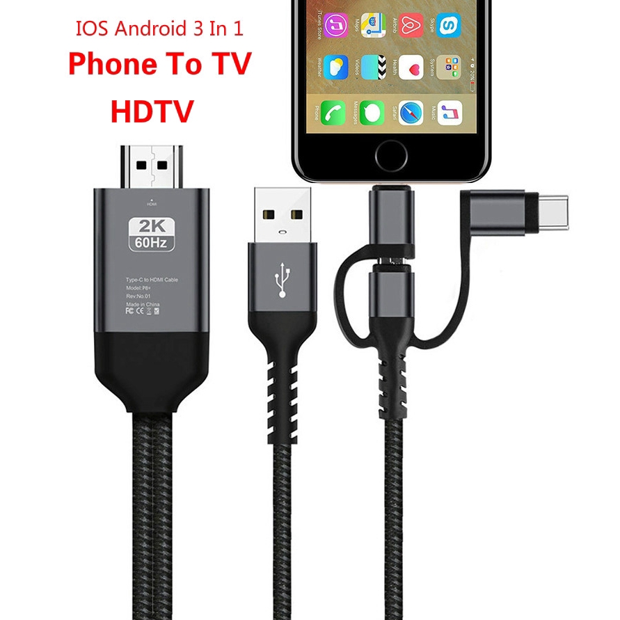 Cabo Adaptador 3 Em 1 Micro USB Tipo C Para HDMI IPhone X 6 7 8 IPad Samsung S8 S9 IOS Telefone Android TV HDTV