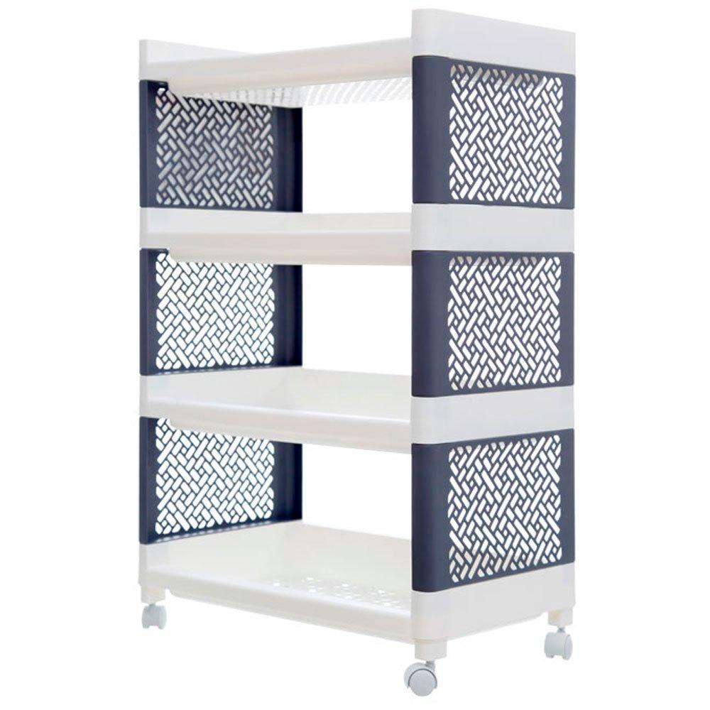 Estante de Plástico Branca e Preta com 4 Prateleiras e Rodíz