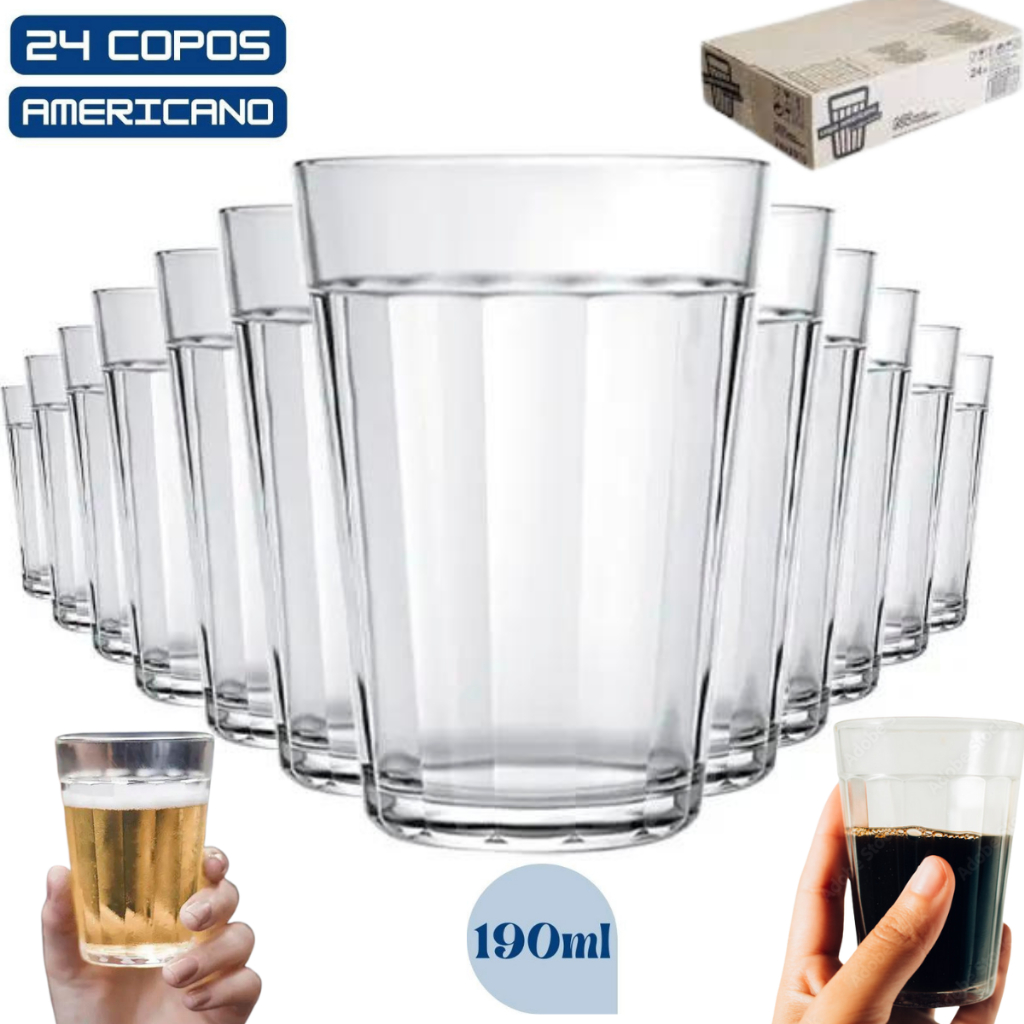 Kit 12/24 Copos Americanos de Vidro 190 ml Nadir Copo de Cerveja Café para Bar