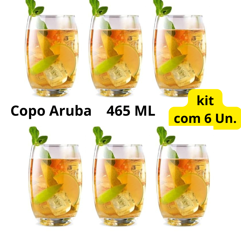 Kit com 6 Copos de vidro alta qualidade Nadir Aruba Transparente 465 ML