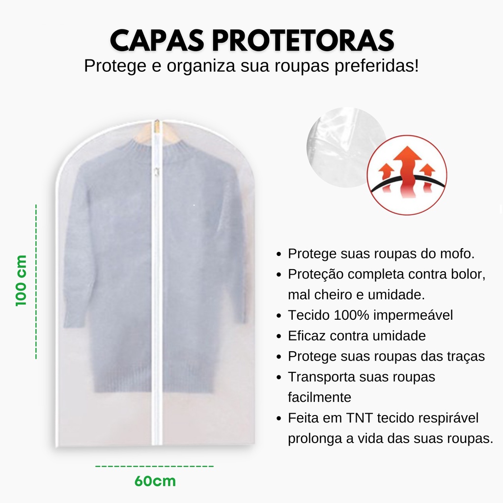 Kit 3 Capas Impermeável Para Terno Jaqueta em EVA Branco Com Zíper Anti mofo Organizador para guarda roupa