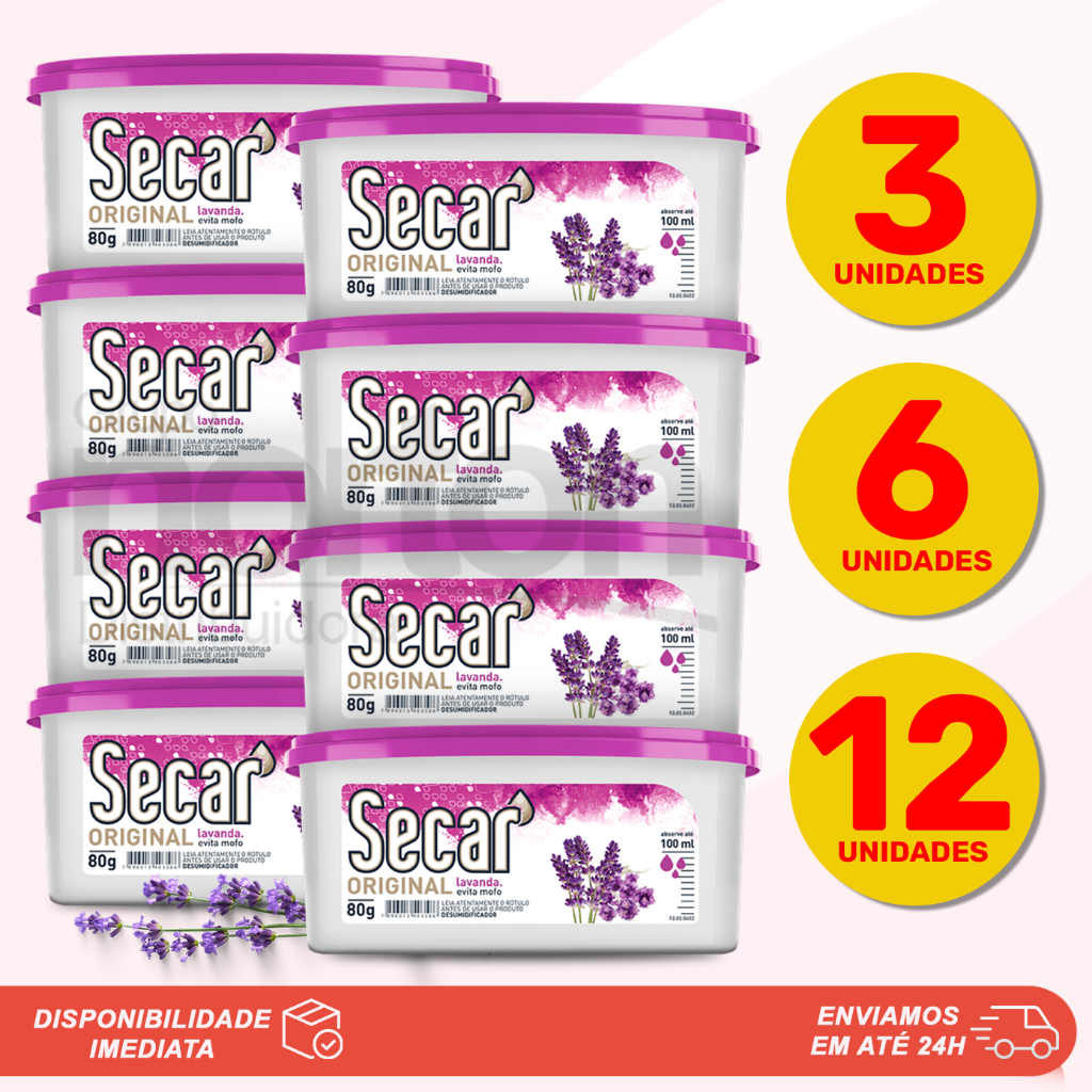 Kit Promocional Anti Mofo Desumidificador Secar Lavanda 80g Evita Umidade Fungos Cheiro Guarda Gavetas Armários Roupas