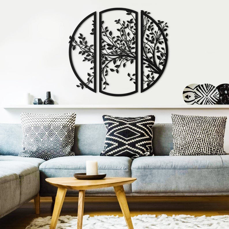 Aplique de Parede vazado Mdf Trio de quadros Ramos de arvore em 3D Sala de estar modernos Quadro para sala de estar moderno quadro decorativo