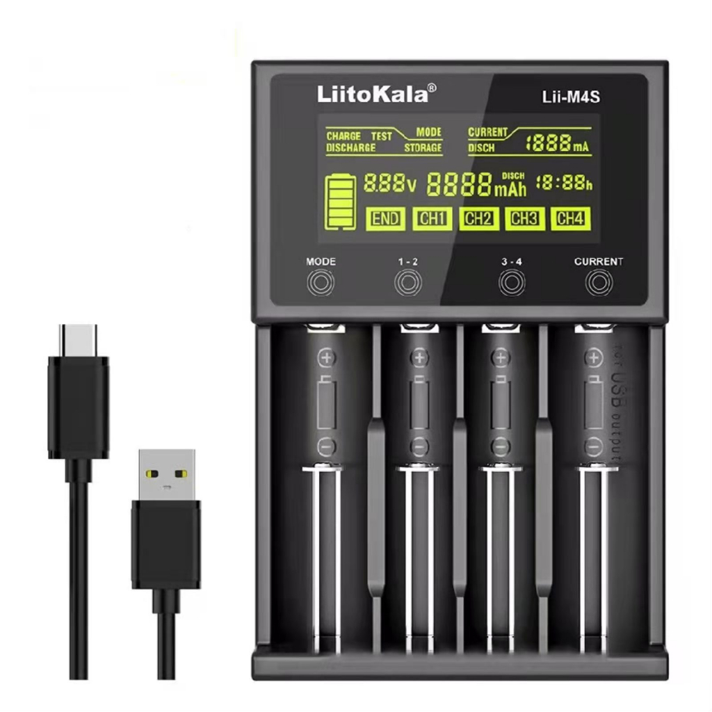 Carregador De Bateria De Lítio Liitokala Lii-M4S 18650 , Para 1.2V 3.7V 3.8V AA AAA 18350 26650 20700