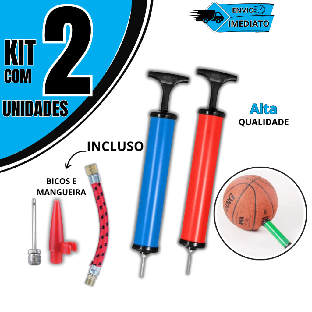 KIT 02 Bomba de Ar Manual 10 Para Encher Bolas Piscina Futebol Vôlei Basquete Boias com Bicos