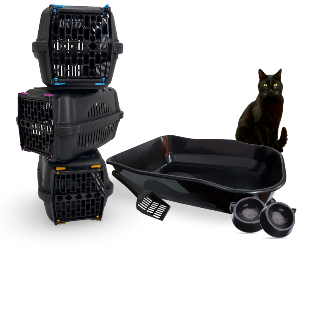 Kit Caixa de Areia Gatos Pet + Caixa Transporte Gato Grande Banheiro Sanitario Higienico Furba