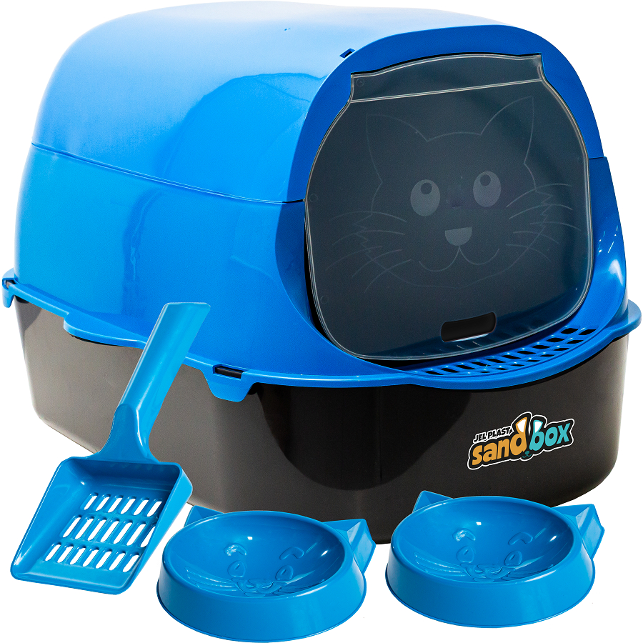 Caixa de Areia Gatos Grande Banheiro Pet Fechado Sanitário Bandeja Higiênica Sandbox - Jel Plast