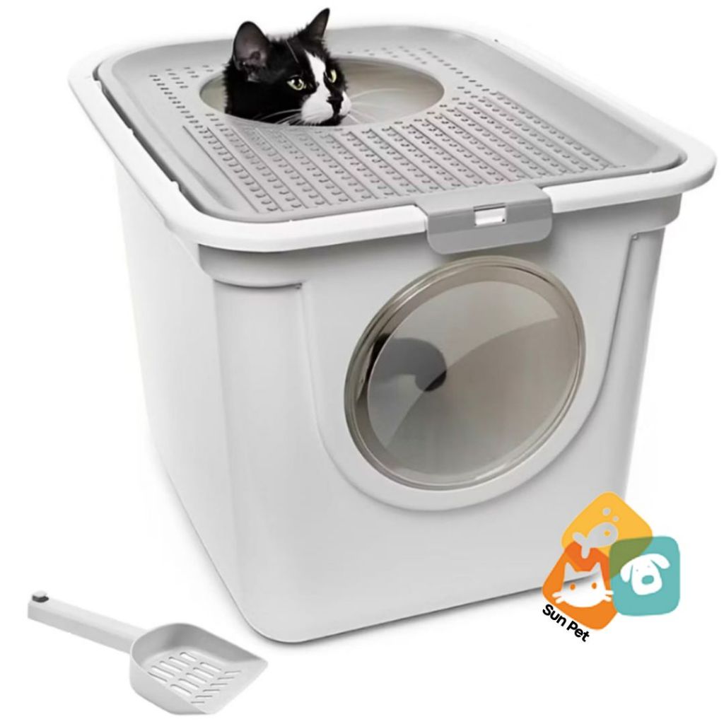 Caixa de Areia Gatos Extra Grande Banheiro Pet Fechado Kit Sanitário Bandeja Higiênica Furba Sandbox Com Porta