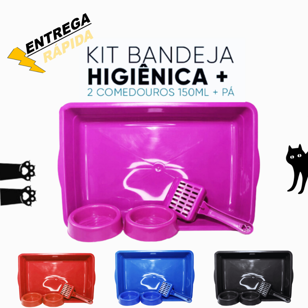 Kit Caixa de Areia para Gatos Bandeja Comedouro e Pá Higiênica pet Care