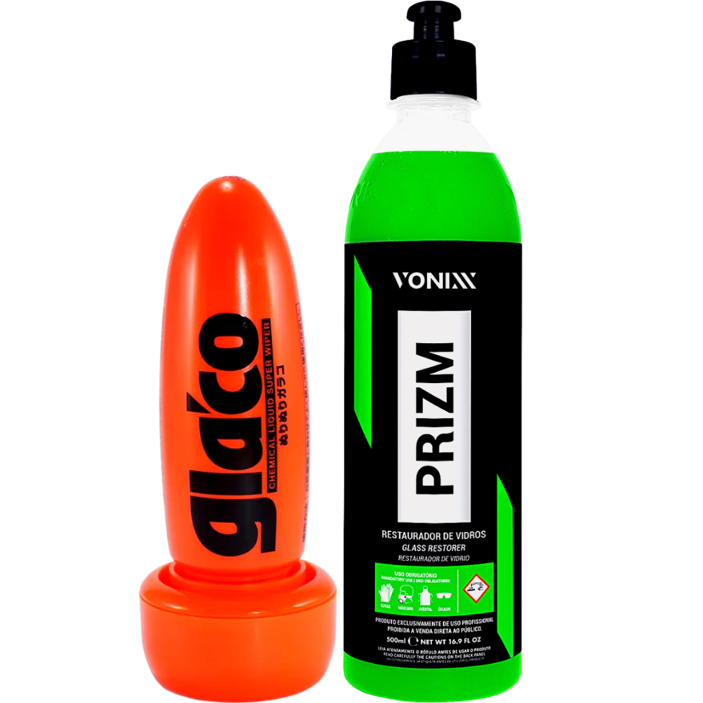 Glaco 75ml Cristalizador Repelente Água Chuva dos Vidros Soft99 + Prizm 500ml Vonixx