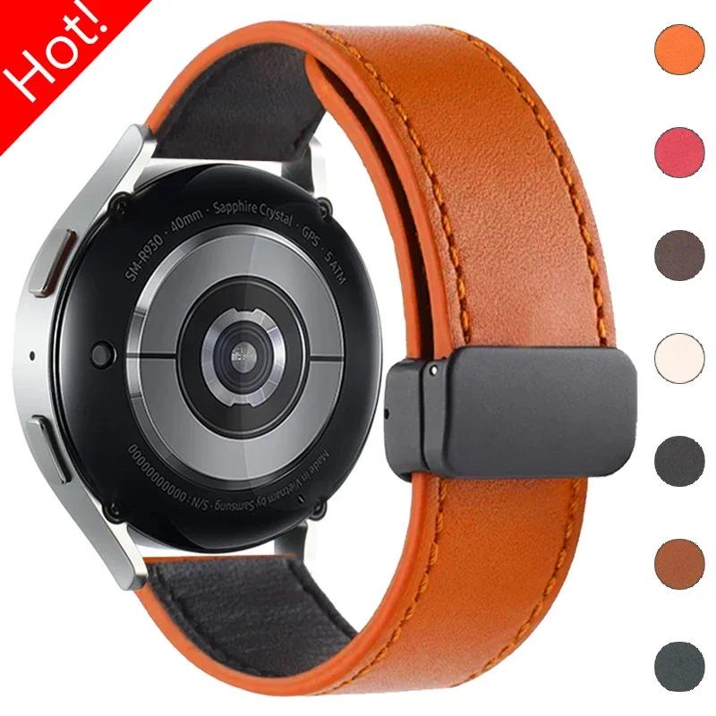 20mm Pulseira De Couro Para Samsung Galaxy Watch 6/5/4 44mm 40mm 5Pro 45mm 6clássica Magnética De Fivela Huawei 3 GT2 42mm