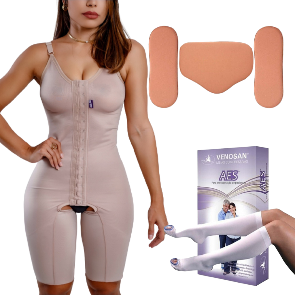 Kit Pós Cirúrgico Completo: Meia de Compressão Venosan + Combo Placa Abdominal e Flancos + Cinta Pós Cirúrgica com bermuda