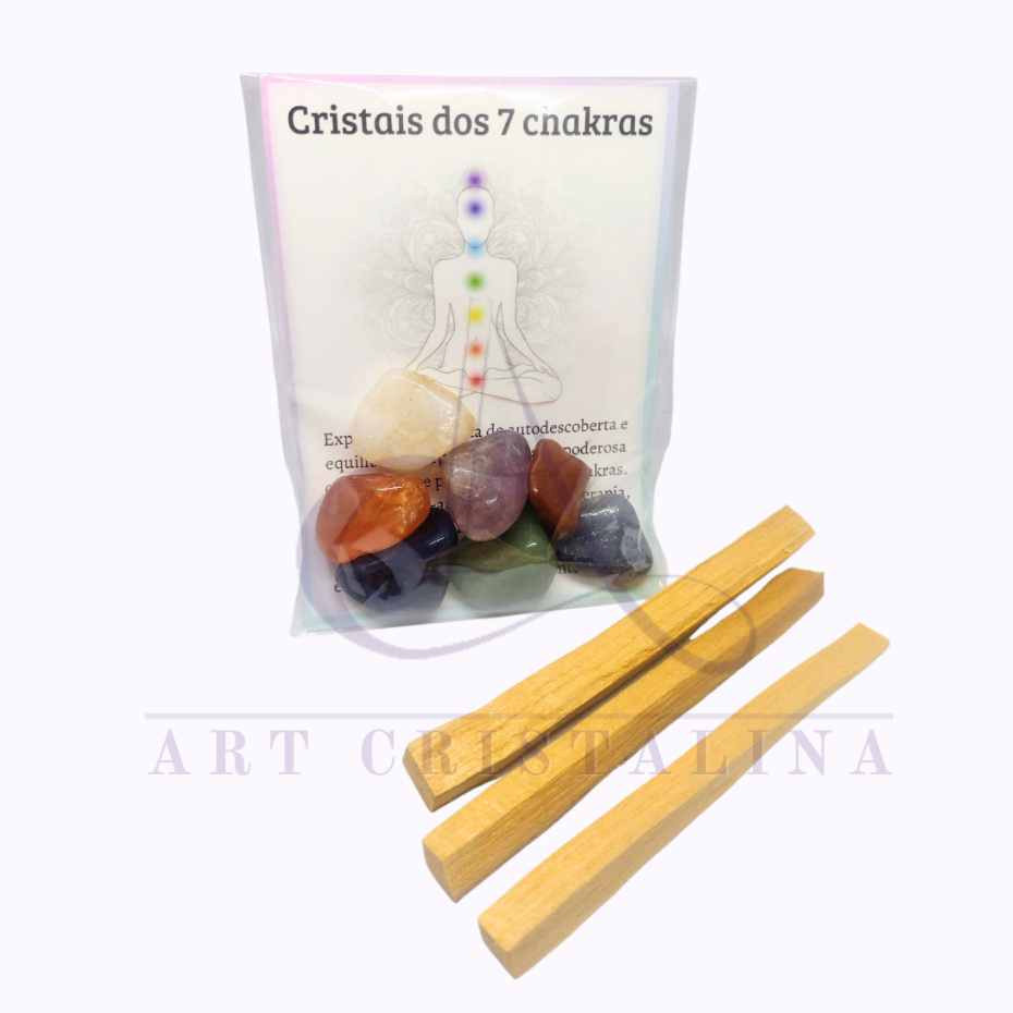 Kit 7 Chakras+PALO SANTO, Cristais Naturais, Pedras Naturais Roladas de bolso + CARTÃO EXPLICATIVO, PAU SANTO 100% NATURAL PERUANO ORIGINAL