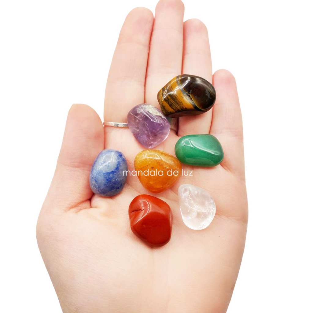 Kit de 7 Pedras Chakras 100% Naturais Roladas Cristais Selecionados - M