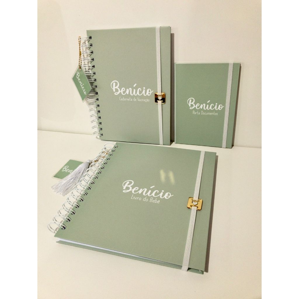 CADERNETA DE VACINAÇÃO + PORTA DOCUMENTOS + LIVRO DO BEBE - VERDE MUSGO - PERSONALIZADA